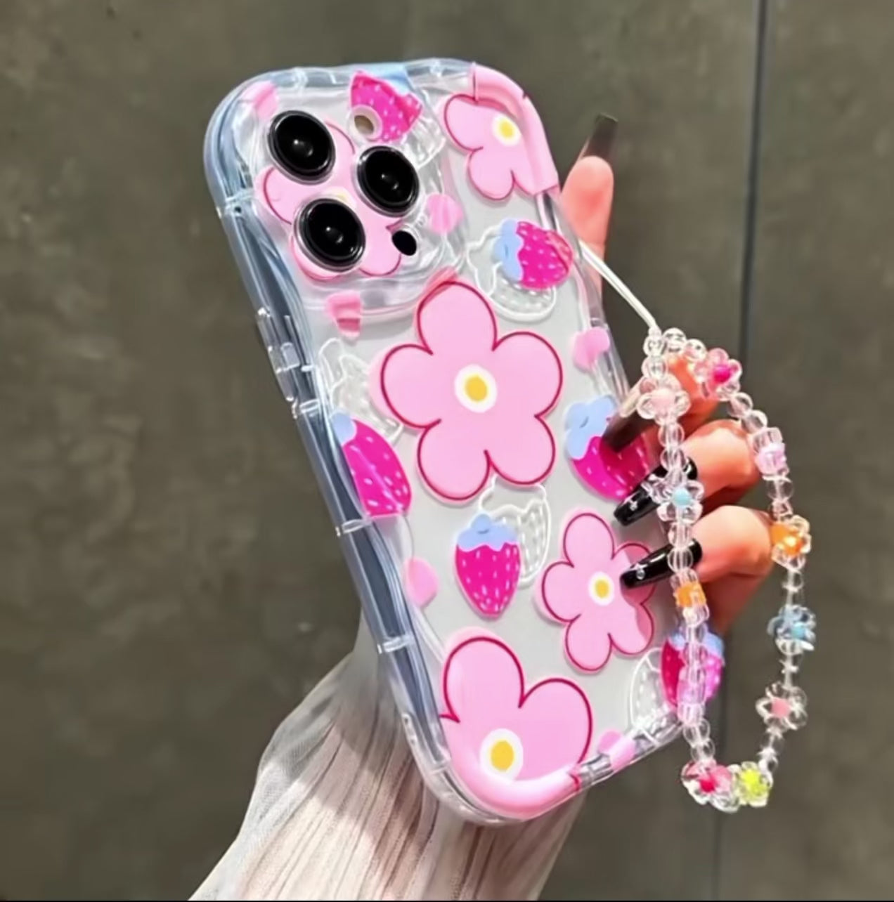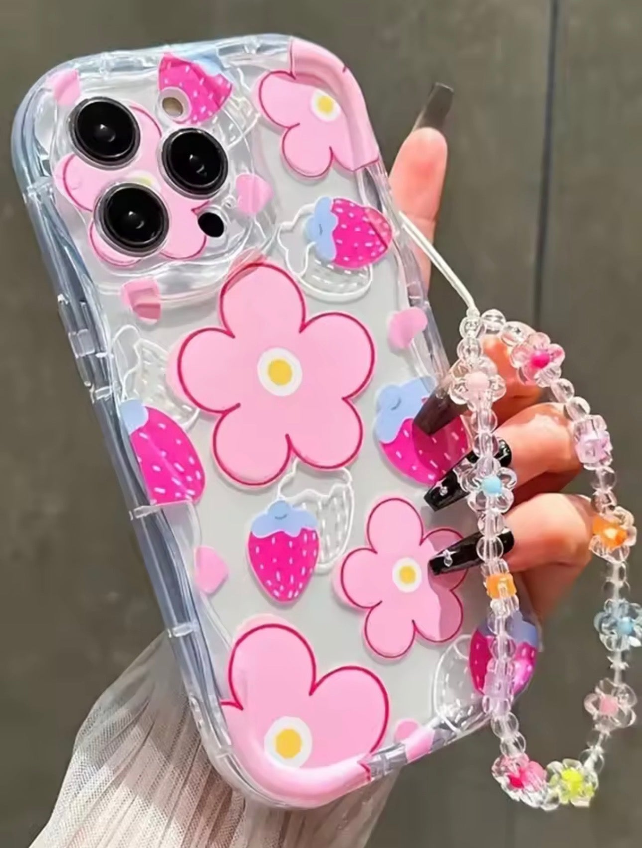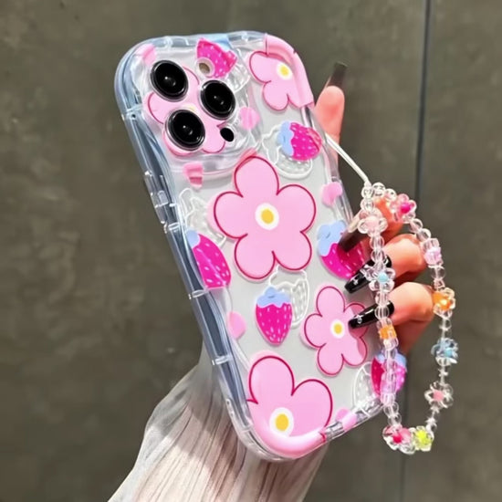 Flora Charm Floral TPU iPhone Case with High Quality Lanyard, Soft, Lightweight & Cute Protection